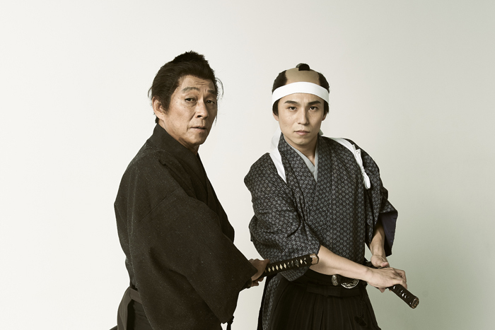 2000年初演の『七人ぐらいの兵士』以降、数年ごとに演劇作品にも取り組んできた明石家さんま。2015年に再演された『七人ぐらいの兵士』以来およそ5年ぶりの舞台『七転抜刀!戸塚宿』は、脚本を福原充則、演出を水田伸生が担当。幕末から明治へと移り変わる時代を背景に、藩士の仇討ちを軸にしたアツイ人間模様が繰り広げられる、さんまにとっては舞台では初の時代劇となる。共演には、『PRESS~プレス~』(2012年)、『七人ぐらいの兵士』(再演)に続き3回目の参加となる中尾明慶のほか、山西惇、温水洋一、八十田勇一、佐藤仁美らが顔を揃える。ポスターやチラシ用のビジュアル撮影が行われていたこの取材時、ちょうど脚本の第1稿があがってきたばかりだということだったが、果たしてどんな作品になりそうか、さんまと中尾に話を聞いた。