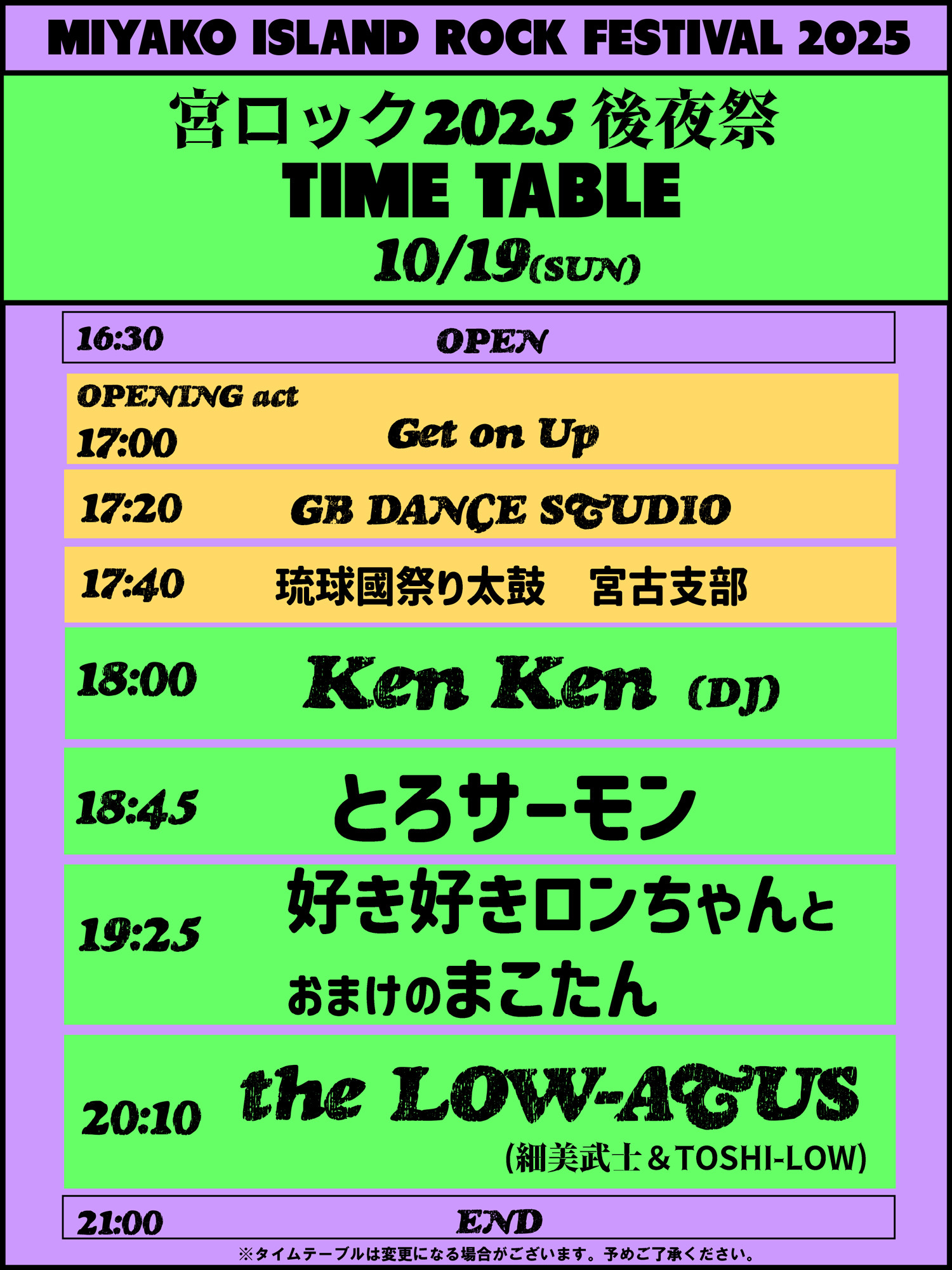 沖縄・宮古島『宮ロック2025後夜祭』タイムテーブル発表