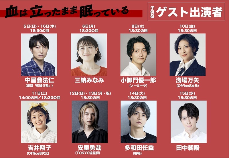 また、物語の重要なカギを握る「子供」役には赤坂芸術祭に参加する他団体や中屋敷にゆかりのある俳優がゲストとして出演。出しろもボリュームがあり、初日には演出の中屋敷が「子供」役を怪演。各ゲストがどのように演じるのか、楽しみにしよう。