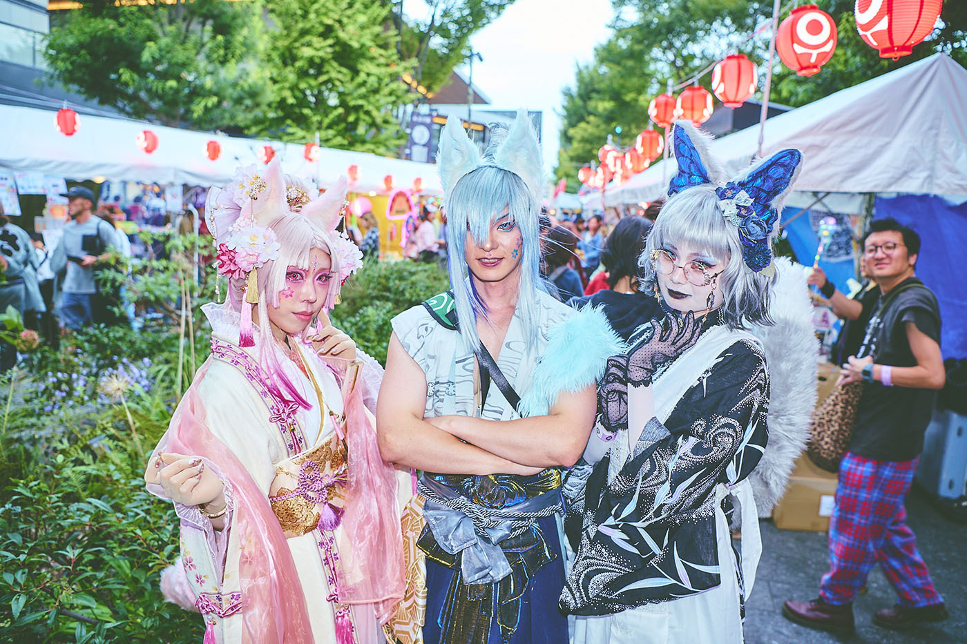 快晴に恵まれたこの日、立川駅から会場へと歩みを進めると、その道中には家族連れやカップルの姿が目に入る。中には和装姿の人や妖怪のようなボディペイントを施した人も多い。それもそのはず、本イベントにはドレスコードが存在し、