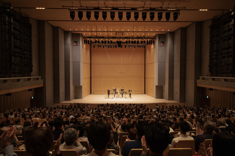 公演の本編を締めくくったのは「ラプソディー・イン・ブルー」(G.ガーシュウィン)。「動物の謝肉祭」と同じ旭井がアレンジしたもので、4人それぞれがリードする見せ場も。ソプラノから、ソプラニーノ、そして再びソプラノに持ち替えた上野は、透き通るような青から鮮やかな青など、その音色で様々なブルーを表現。会場を酔わせていた。