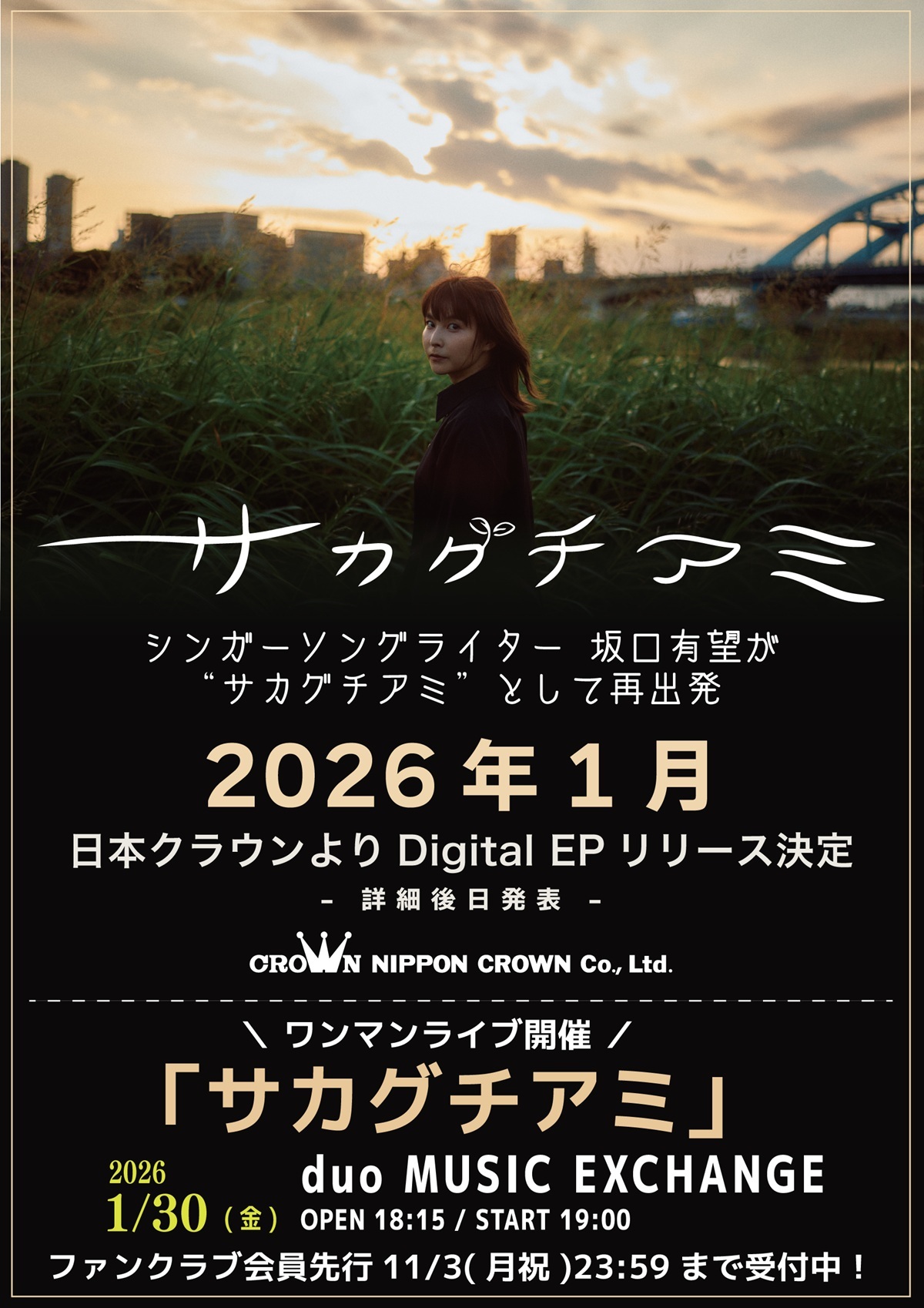 • 坂口有望、“サカグチアミ”として再出発 日本クラウンへ移籍&新曲リリースを発表