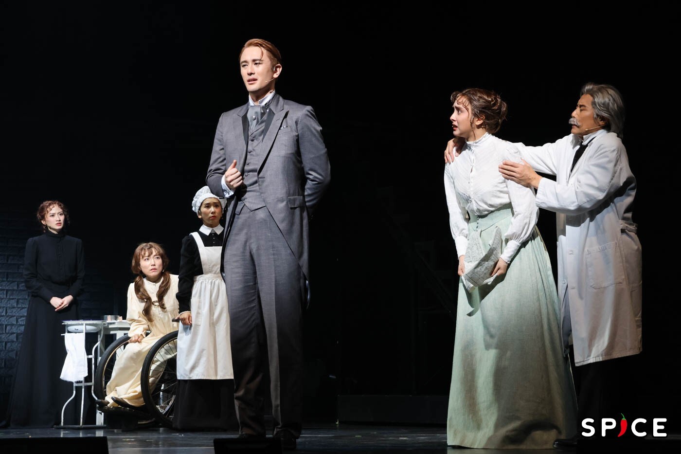 マリー・キュリーを演じたのは、本作が初主演作となる星風まどか。20代から晩年までの演じ分けが見事で、冒頭の低い声色と深い眼差しから、パリへ向かう列車のシーンに切り替わった瞬間の眩しい笑顔と瑞々しい歌声が印象的だ。科学のことになるとキラキラと目を輝かせ、息をつく間もないほど一生懸命に語る姿が愛らしい。一方で、困難にぶつかったときに見せる、確固たる意思を感じさせる挑戦的な表情や力強い歌声にも惹きつけられた。星風はマリーというひとりの女性の人生を通して、己の信念に従って生きることの孤独と希望を体現していた。