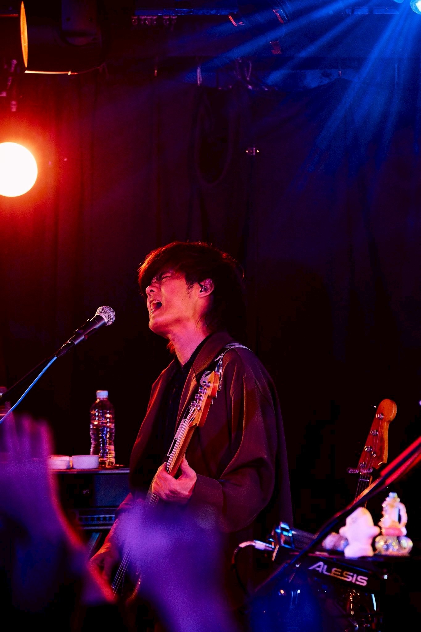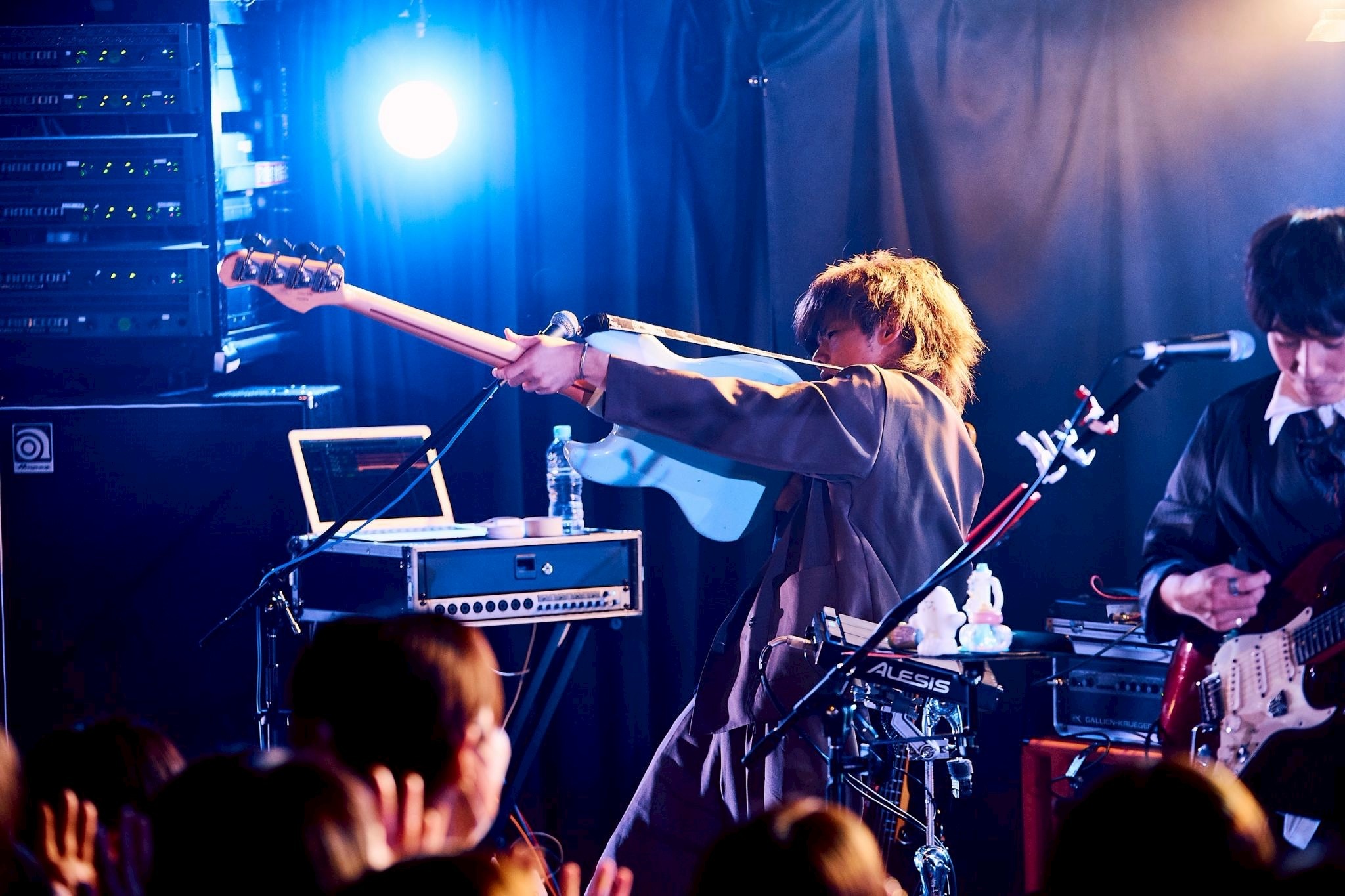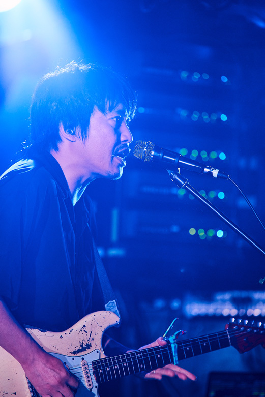 そこから、マスロック風の演奏をエモーショナルに展開させる「東京フリーマーケット」に繋げると、<でもまだこれから まだまだ諦めてないんだ>と歌いながら、「うおぉぉぉ!」と藤森は雄叫びを上げ、フロアの熱をぐぐっと上げる。