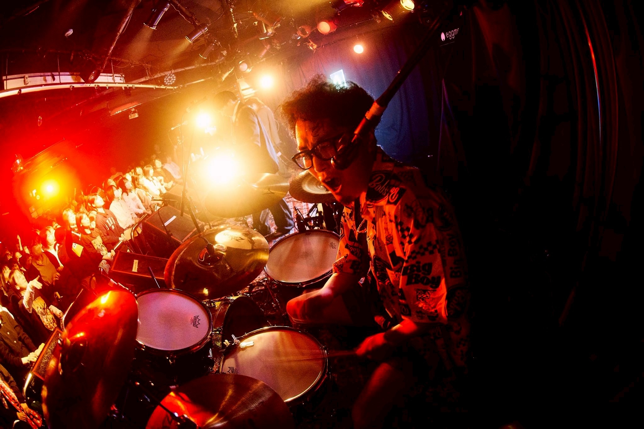 ところで、この日、SuiseiNoboAzが会場入りした時まさにリハーサルの真っ最中だったSAKANAMONの演奏を目の当たりにして、「謎の変態世界を繰り広げている」と石原は思ったそうだが、それが中盤で立て続けに演奏した2曲ーー赤ちゃん向けテレビ番組『シナぷしゅ』に提供したSAKANAMON流のナーサリーライム「すきなきもちもち」とエンディングがサンバになる「すっぽんぽん」だったことは言うまでもないだろう。前者では、おもちゃのラッパ、ガラガラ、ぷにぷにも演奏に交える遊び心を、そして、後者では<すっ><ぽん>という声をサンプリングしたパッドを即興で打ち鳴らす藤森と、それに合わせようと森野と木村浩大(Dr)が繰り広げるアクロバチックな演奏を楽しませたが、「今のセクションのリハをしているとき、ちょうどボアズのメンバーが入ってきた。どんなバンドなんだ」と森野は苦笑い。