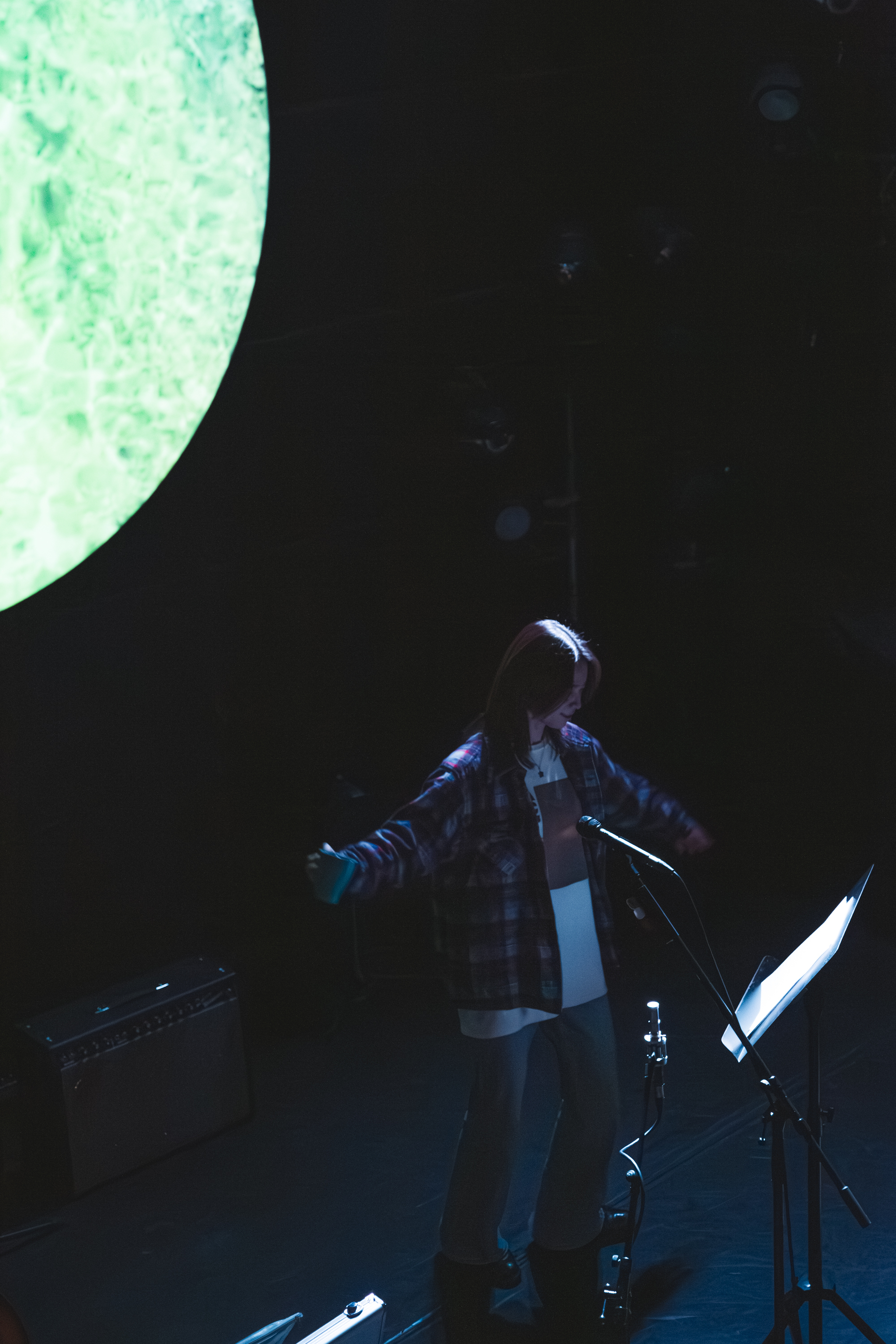 歌に込めた聴く者の気持ちを揺さぶる切なさもさることながら、19歳の時に書いた曲とはにわかには信じられない成熟が胸に染みる「始まりに」から「teenage lovers」「からっぽ」「心は」と繋げ、ミックスボイスをダイナミックに交えつつ、メランコリーとともにシンガーソングライター然とした魅力を印象づけると、「弾き語りはいつもやってるからちょっと違うことをやりたい」と今一度言ってから、「言葉を紡いできました。メロディーに頼らずしっかりと伝えたい」と「アナーキーの少女」「辺野古にて~海よりも」という詩をポエトリーリーディングとして披露した。間には片平曰く自由の解放の歌であるボブ・マーリーの「Redemption Song」と沖縄民謡の「てぃんさぐぬ花」のカバーを巧みに織り交ぜる。