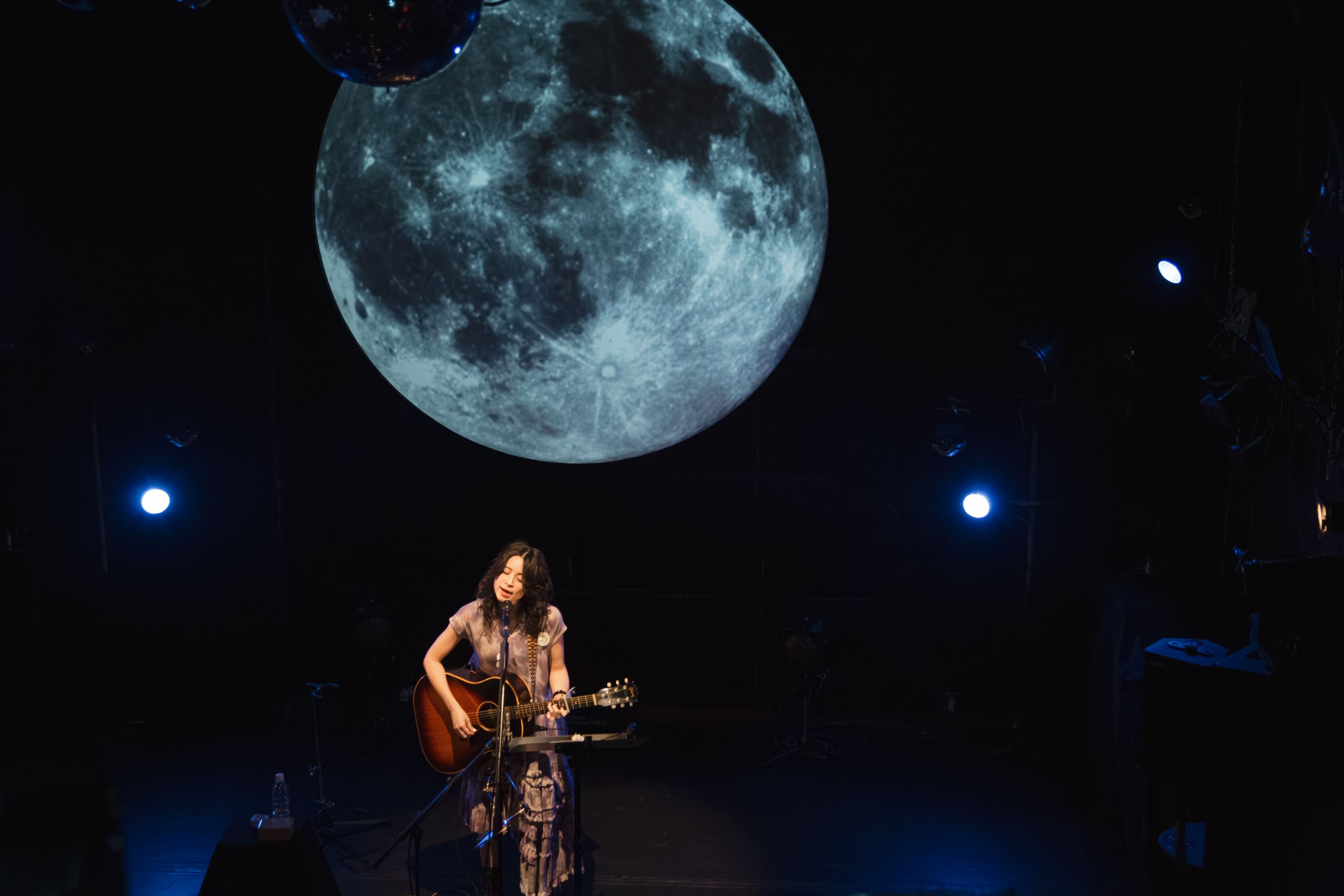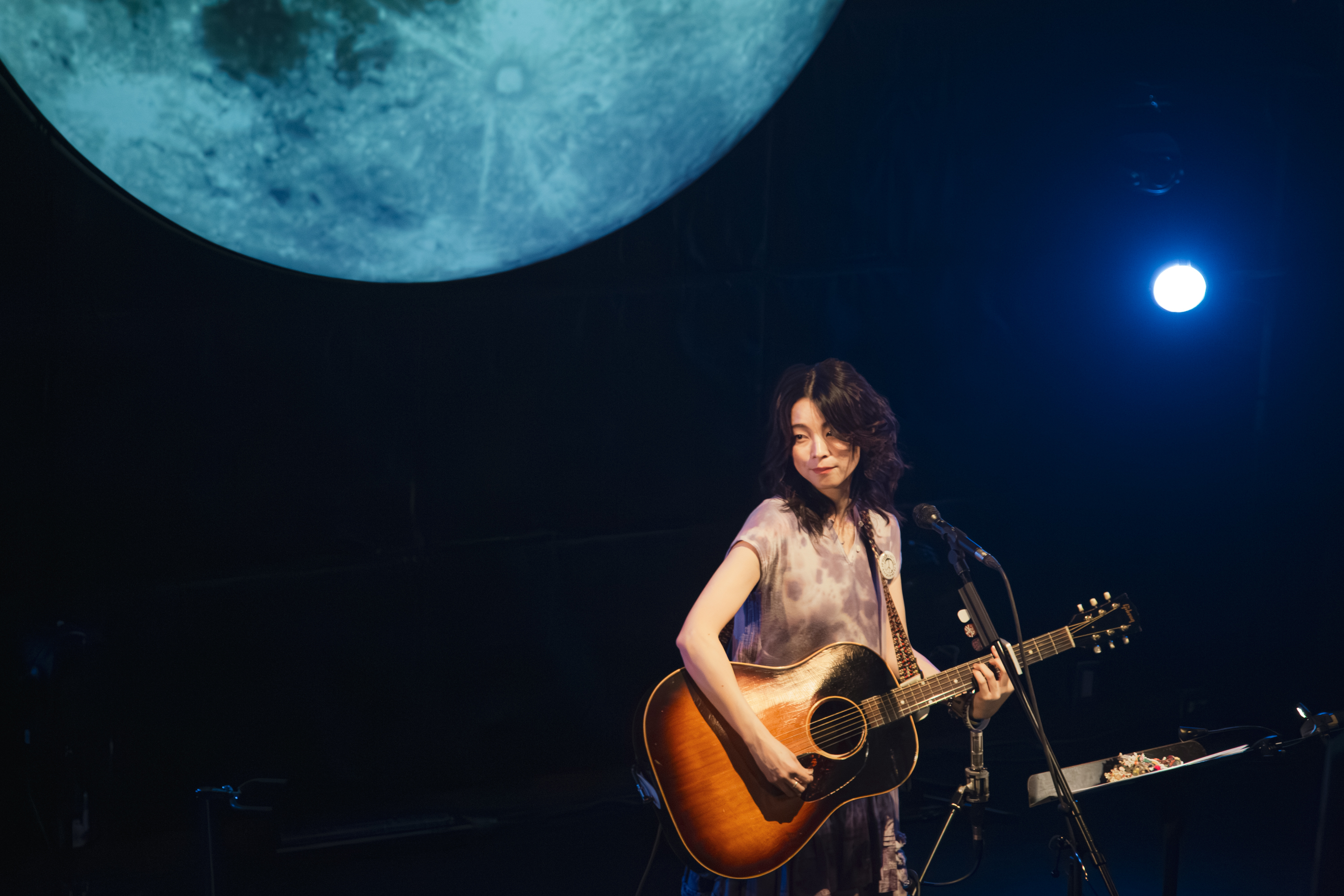 本編のラストナンバーに選んだのはステージのバックドロップに飾られた月のオブジェを意識したのか、「まんまるいお月様の歌」と紹介した音源化されていない「コールドムーン」。コロナ禍の真っ最中の2020年4月に「うたつなぎ」の1曲としてSNSで弾き語りの動画を発表した時は、満月の夜空に旅立った愛犬への子守唄と説明していたバラードだが、これもまた祈りの1つだったのかもしれない。