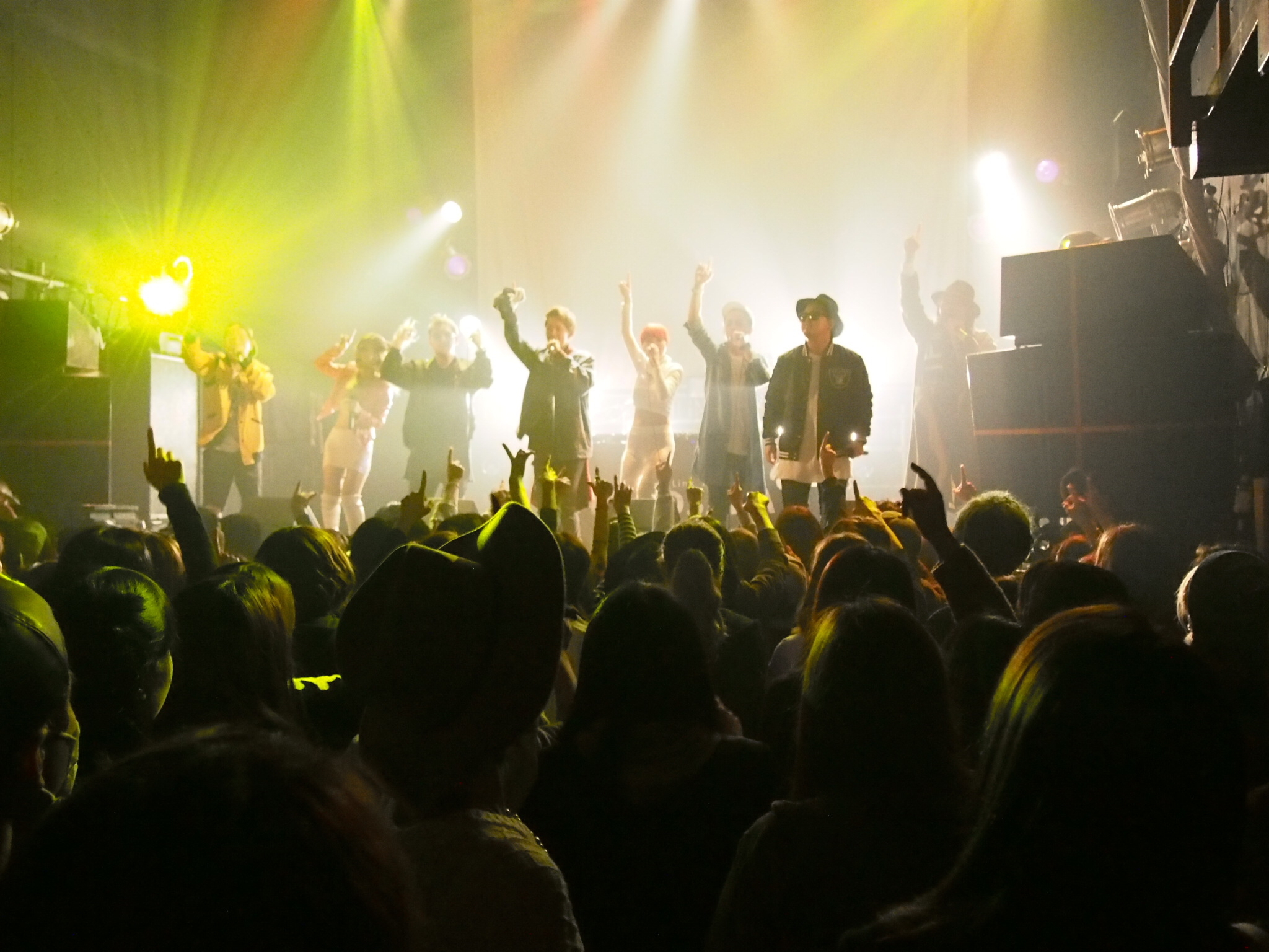 次世代のケツメイシを探すオーディションをきっかけに結成。RYOJIをして「ライバル!」と言わしめたという、男性6人+女性2人の大所帯ユニット・1 FINGERがFANJtwiceのステージに降り立つ! ステージに所狭しと並んだメンバーは、それぞれが異なる個性で目を引く、瞬時にツワモノとわかる面々たちばかりだ。初っ端、洒脱な「Shooting Star」ではneco.(MC&Vo)の軽快なラップから始まり、代わる代わる色を変える8色のボーカルへ釘付けに! その貫禄とのギャップが楽しいメンバー最年少のシンガー・大志(MC&Vo)の鮮烈な歌声に酔わされたと思いきや、低体温のTOSHI(MC&Vo)のフロウがアーバンな雰囲気を演出。続いて「AFIRIO」では女性陣の男前さがフルスロットル! 芯のあるまっすぐな声質のイリナ(Vo)に加え、コケティッシュな魅力いっぱいのCha-ka(MC)の高速ライムには圧倒されるばかりだ。男性陣も負けじと、J-CROWN(MC&Vo)が腹の底から突き上げるような重厚さとシブさをたたえたハーモニーを提示。ピコピコ感がどこか未来的な「FLY」では「飛べる体力が残ってるでしょう!」とIMANISHI(MC)が煽り、爽快な世界感を聴かせるなど、振り幅の広さには驚かされる。まだまだ聴きたりない中、最後はTaKu (Vo)のスイートな歌声がよく映える「Dream」でシメ! 確かな実力とそれだけに留まらない突出した個性のぶつかり合い。スゴい奴らが現れた……そんな、なかなかお目にかかれないだろう“スゴい奴ら”=1 FINGERとの出会いに多くのオーディエンスが興奮を隠せなかったようだ。
