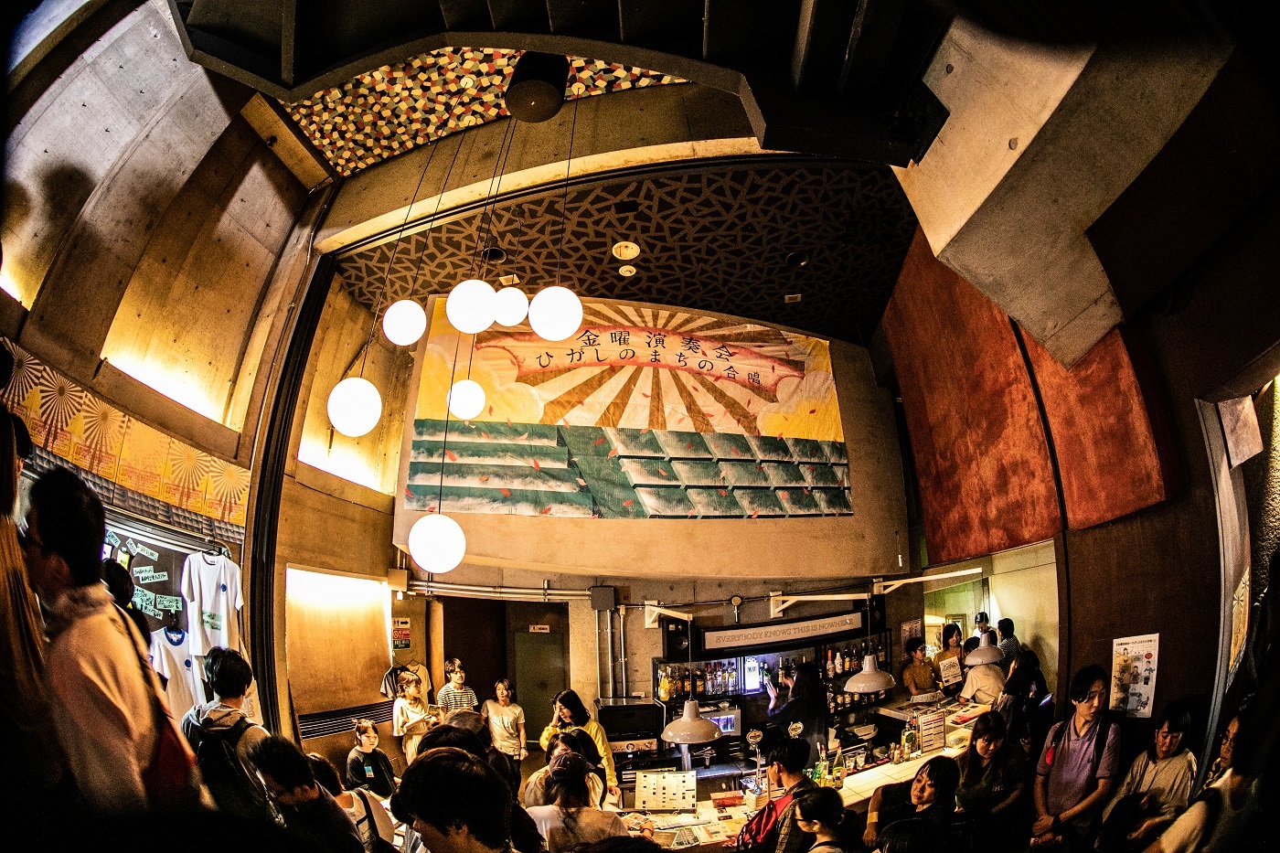 入場してまず目に止まったのは、学生の集合写真をイメージした顔ハメパネル。他にも大布幕や昭和タッチの絵画、人が三人でも乗ったら窮屈なくらいの幅の手作り感溢れるステージなど、まるで“学園祭”を思わせるような懐かしさ漂う演出たちが迎えてくれ、学生時代にタイムスリップした気分だ。京都精華大学出身の彼ら特有の創造力に長けた装飾の数々に、これから始まる“合唱祭”への期待が高まる。