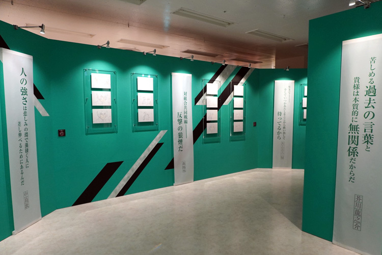 アニメ第2シーズン展示風景。複製原画をたっぷり見られる。