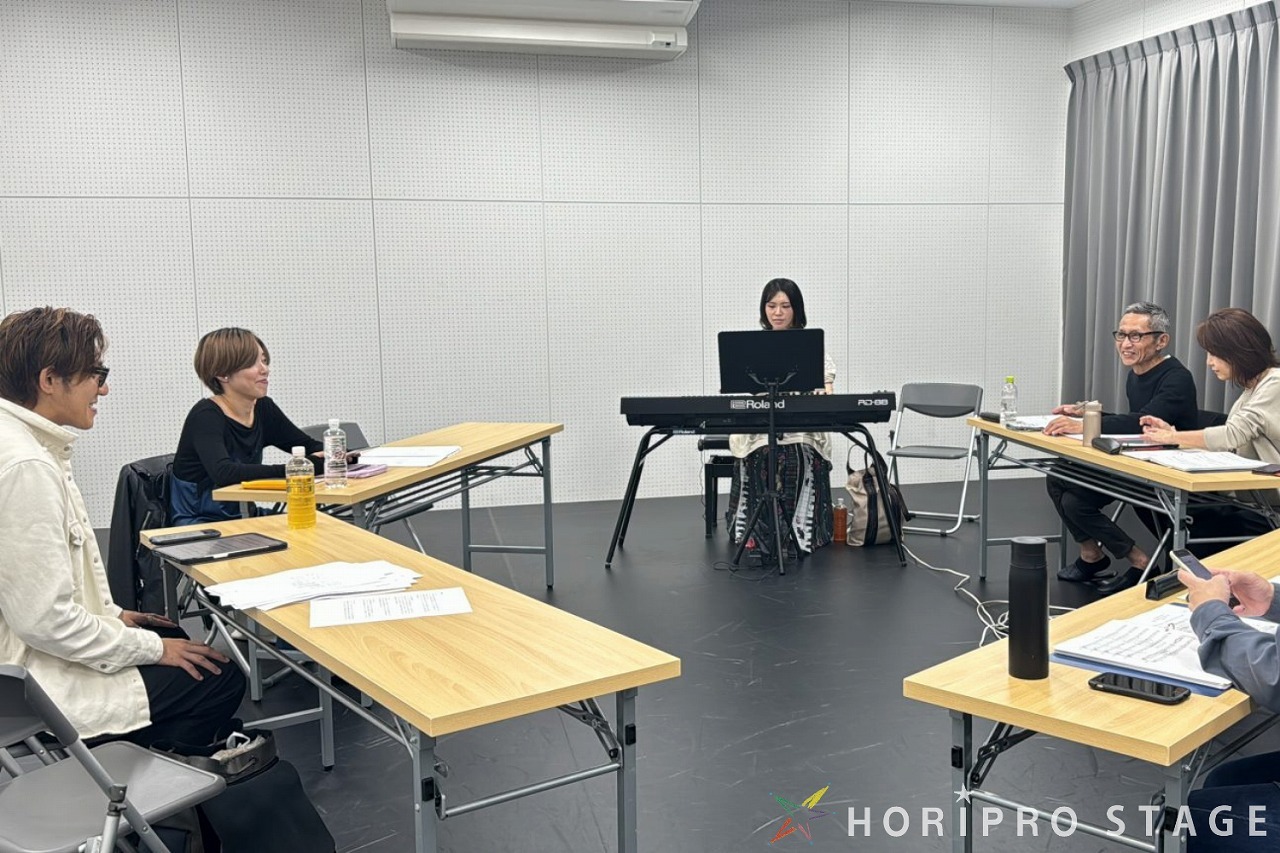 この後も、コーラスの確認や譜割で不明確なところはないかの細かな検証が行われていきました。「歌的にはこれでOKだと思うけど、振付が激しそうなシーンだから大丈夫かな…」という、実際に舞台で立ち上がった時に成立するかどうかの懸念も共有されていて、こうしたポイントは確かに台本と譜面だけでは気づけないことなのかもしれません。