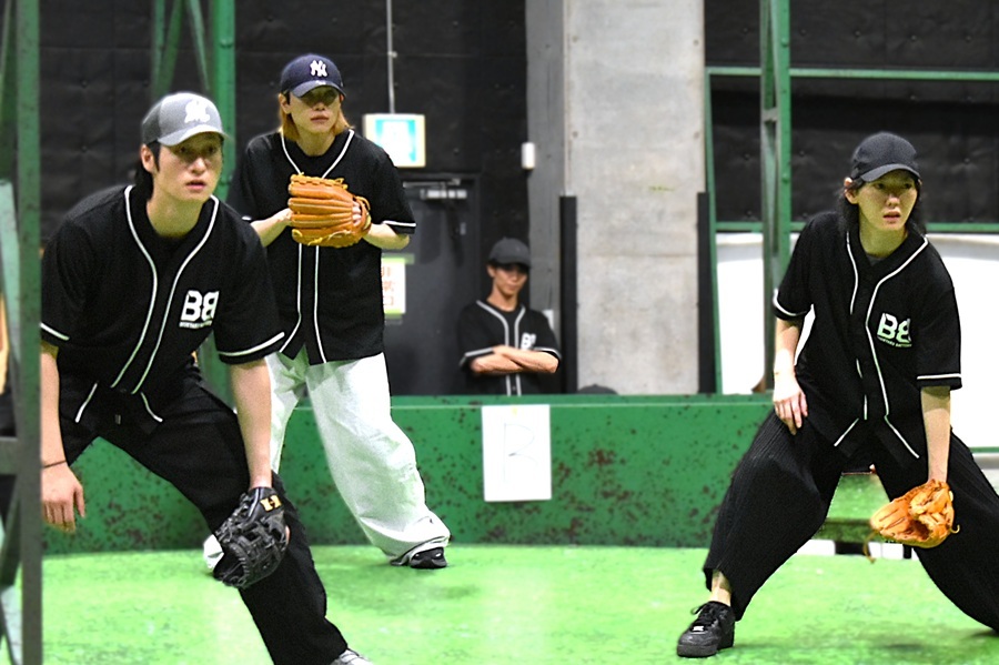 シリアスとコミカルが入り交じり、時には融合する——本作の特色としてあげられる絶妙なバランスを表現するには、より綿密なシーンづくりが必要だ。演出・山崎からの言葉で印象的だったのは、試合が始まる直前の小手指ナインの雰囲気について。審判による「プレイボール!」の掛け声を受け、各々が自分自身に気合を入れる。ほんの一瞬のシーンだが、山崎からは「自信を持って言える人が増えている、という時間にしておこうか」とリクエストが。目に見えない“緊張感への色付けが行われた瞬間だった。