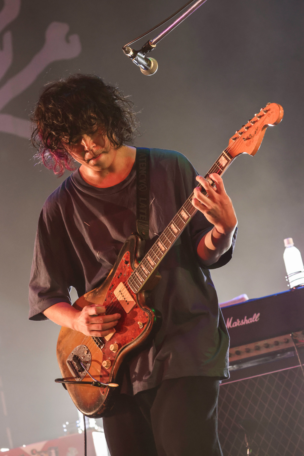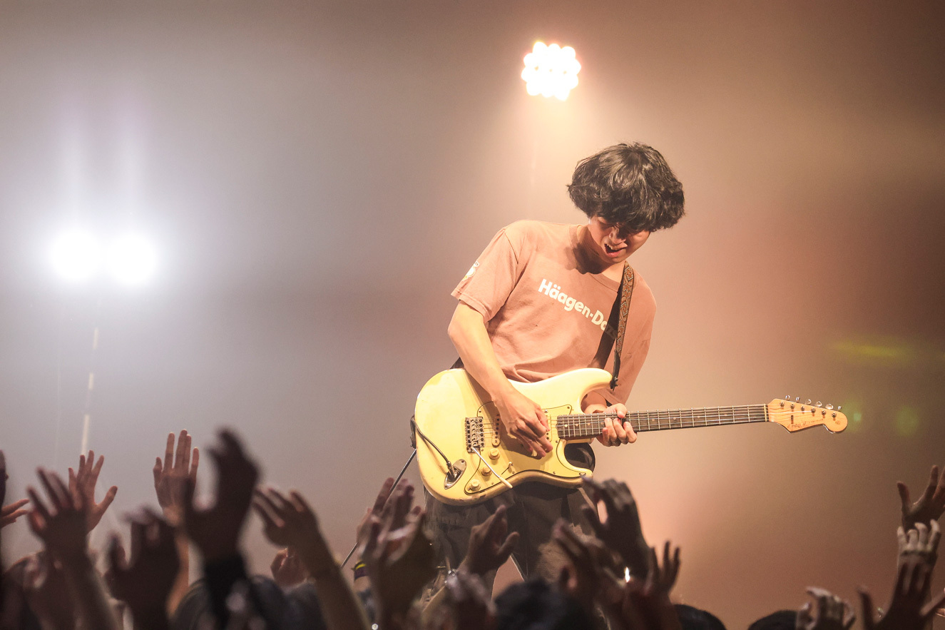 軽妙なやり取りを後に、「カーニバル」ではショウもアコギをかき鳴らし、幽玄な音の旅へと突入。70年代風情のあるフォーキーな質感が新鮮で、4人の底知れぬ音楽愛を垣間見る心地だ。オカモトレイジ(Dr)のカウントをトリガーにした「ありがとう」では、甘酸っぱいアンサンブルが炸裂。今宵の出会いへの感謝を高らかに歌い上げていく。