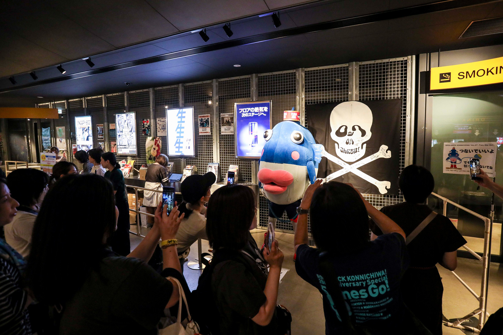 前日に続き、スクリーンへFM802 DJ加藤真樹子と中島ヒロト、スピッツの4人がお目見え。『ロックロック』ファンから事前に募集した「こんにち話」(『ロックロック』の思い出や、つながった縁などのエピソード)を紹介しながら、今回の宣伝隊長「ツナイダー」、そして27回目にちなんだ「ふなっしー」へとバトンタッチし、タイトルコールへ! 『ロックロックこんにちは!Ver.27 ~Two-Na-Go!~』2日目が幕を開けた。