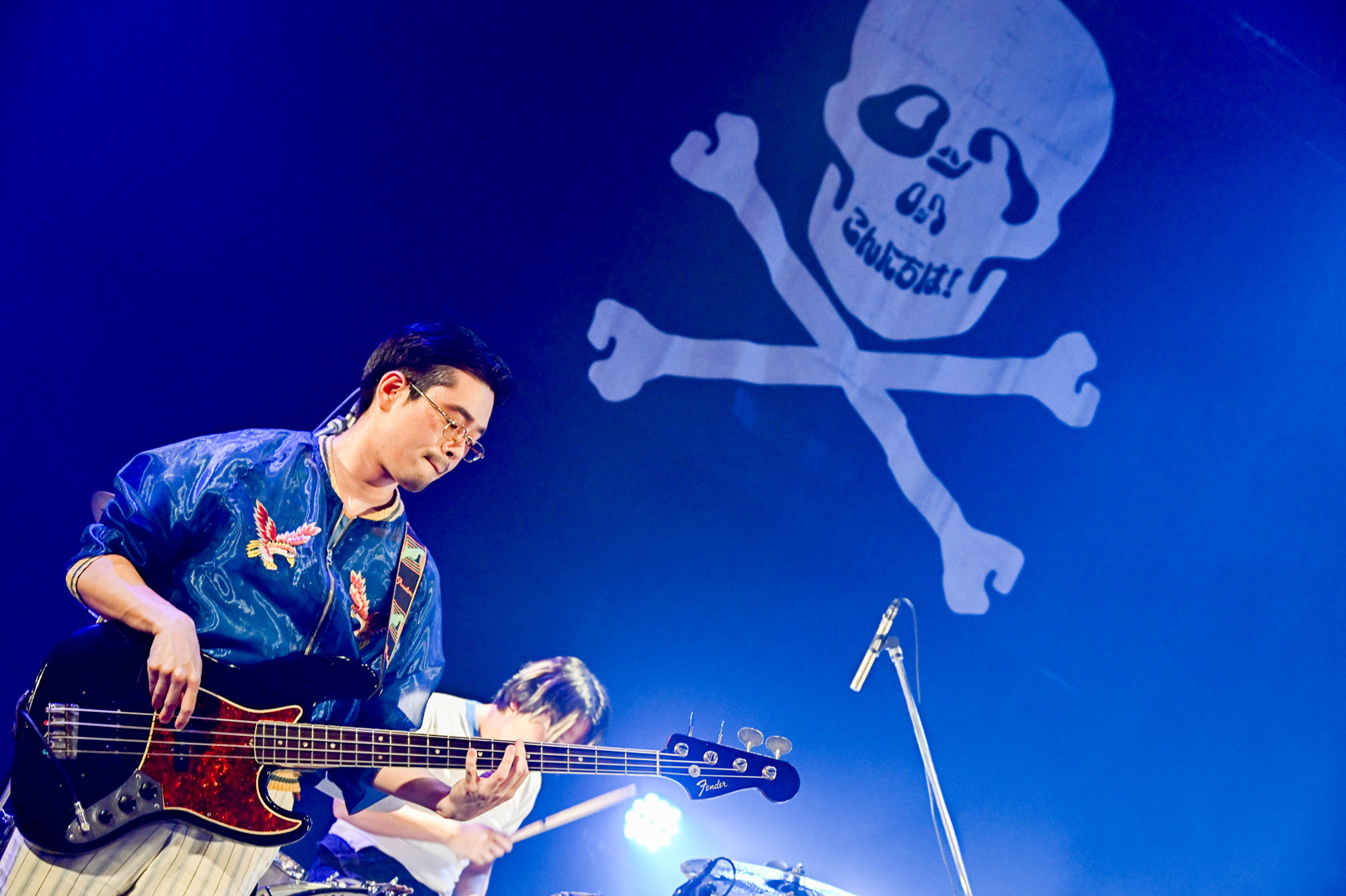 MCではこれまたお馴染み、バンドの年間ライブで唯一となるコール&レスポンス「ロックロック?」「こんにちは!」がバッチリ決まり、和やかな空気に。