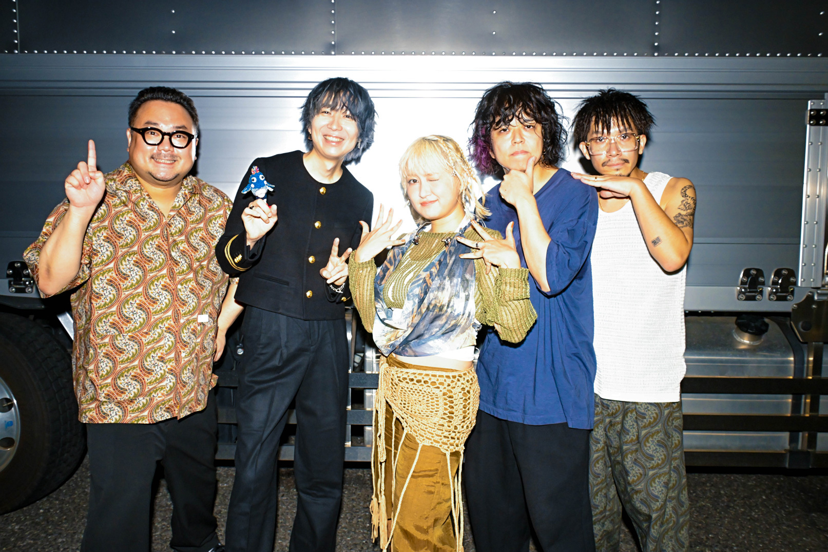 「OKAMOTO'Sは『ロックロック』に限らずいろいろと助けてくれるバンドで。今日もさらにパワーアップしてて、かっこよかったですよね。ツアー前日に出てくれて、本当に感謝! あとね、ふなっしー。リスペクトしている梨なので(笑)。昨年から次は27回目だから(27=ふな)、ふなっしーだなと思ってたんですよ」(草野)