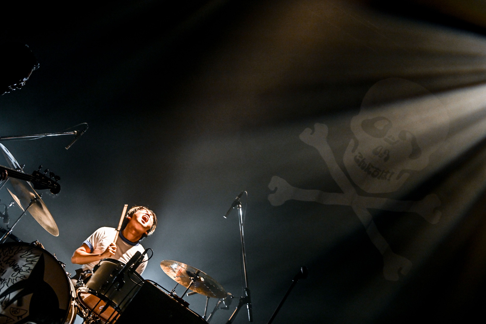 脱力ムードのやり取りから一気にラストスパートへ。「クリスピー」「8823」と畳み掛け、田村が三輪のギターピックを次々と客席へ投げるおちゃめなシーンも。﨑山が放つタイトなリズムが際立つ「美しい鰭」で本編は幕を閉じた。