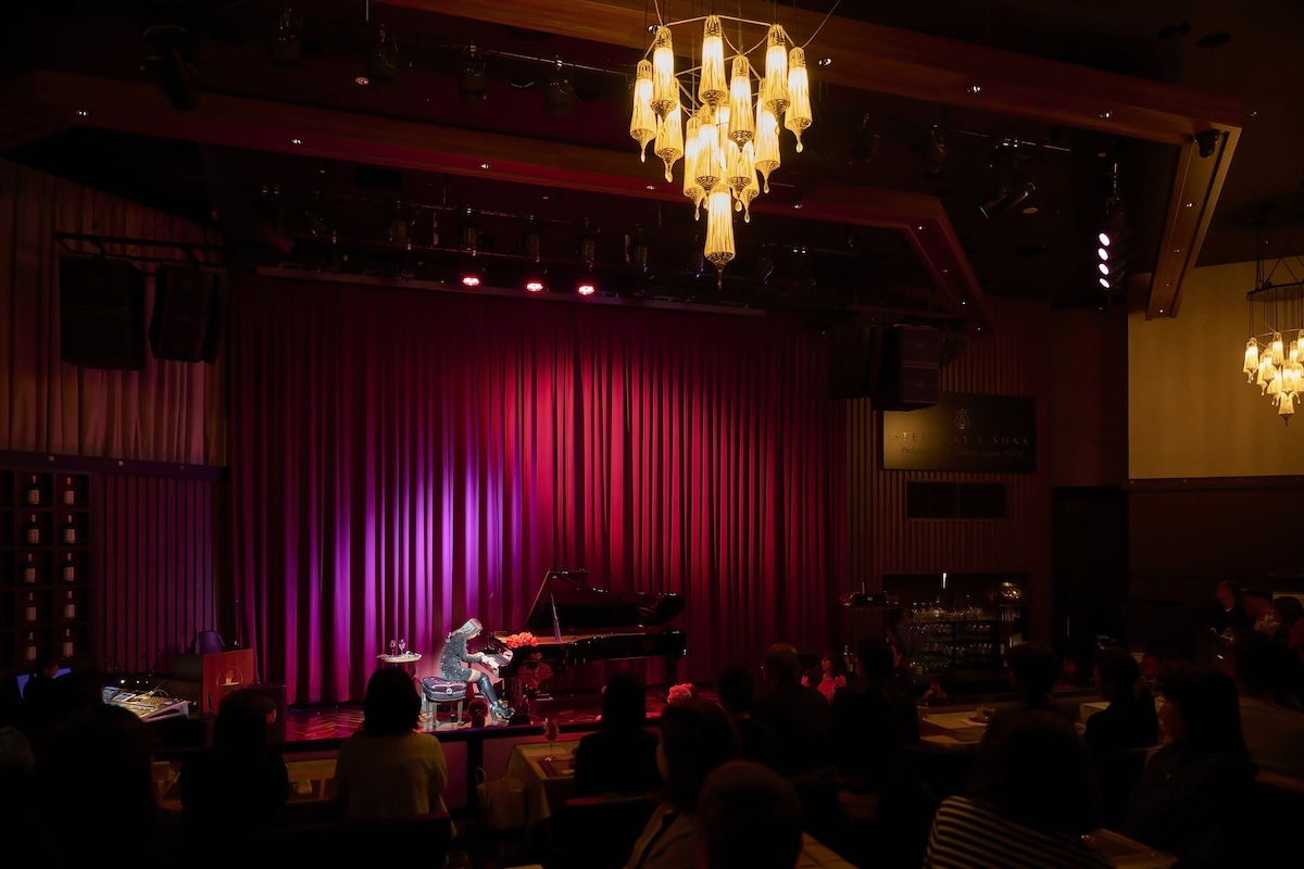 五条院が舞台に一歩足を踏み入れた瞬間、空気が変わり、その存在が放つ気品と挑発、静けさと強さで全てが音になる。フレデリック・ショパンの「革命のエチュード」から始まり、「幻想即興曲」、そしてドビュッシーの「月の光」へ。一音ごとに磨き抜かれた透明な響きが、グラスの縁をなぞる泡のように会場を包み込み、美食と音楽、ふたつの芸術が呼吸を合わせた瞬間、そこにいた誰もが“感覚の陶酔”を味わっていた。