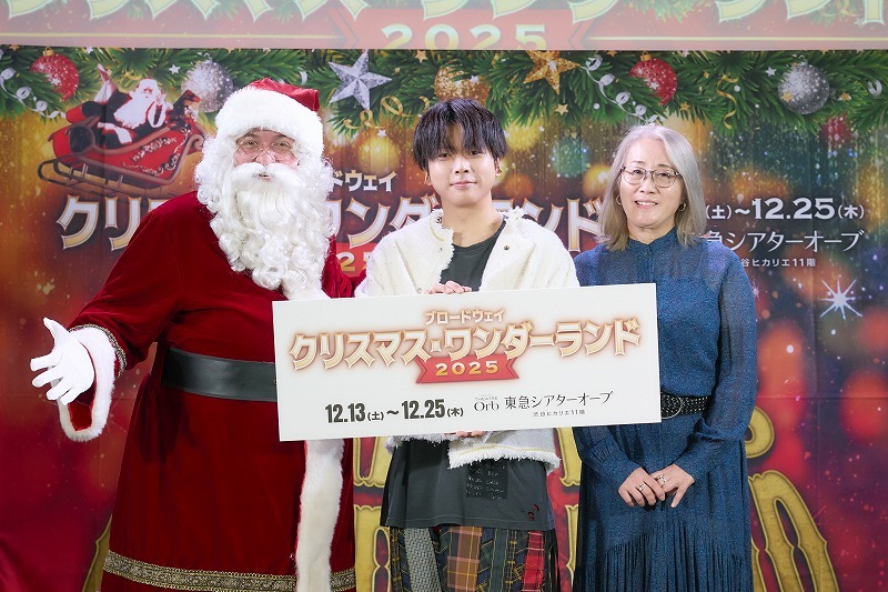 2016年の初演以来、渋谷の冬の風物詩として愛されてきた『ブロードウェイ クリスマス・ワンダーランド』。10月6日(月)には、公演に先立って記者発表会が行われ、応援アンバサダーを務めるNEWSの増田貴久、演出を担当する金谷かほりが登壇。さらに、一足早くサンタクロースが来日し、クリスマスソングを披露した。