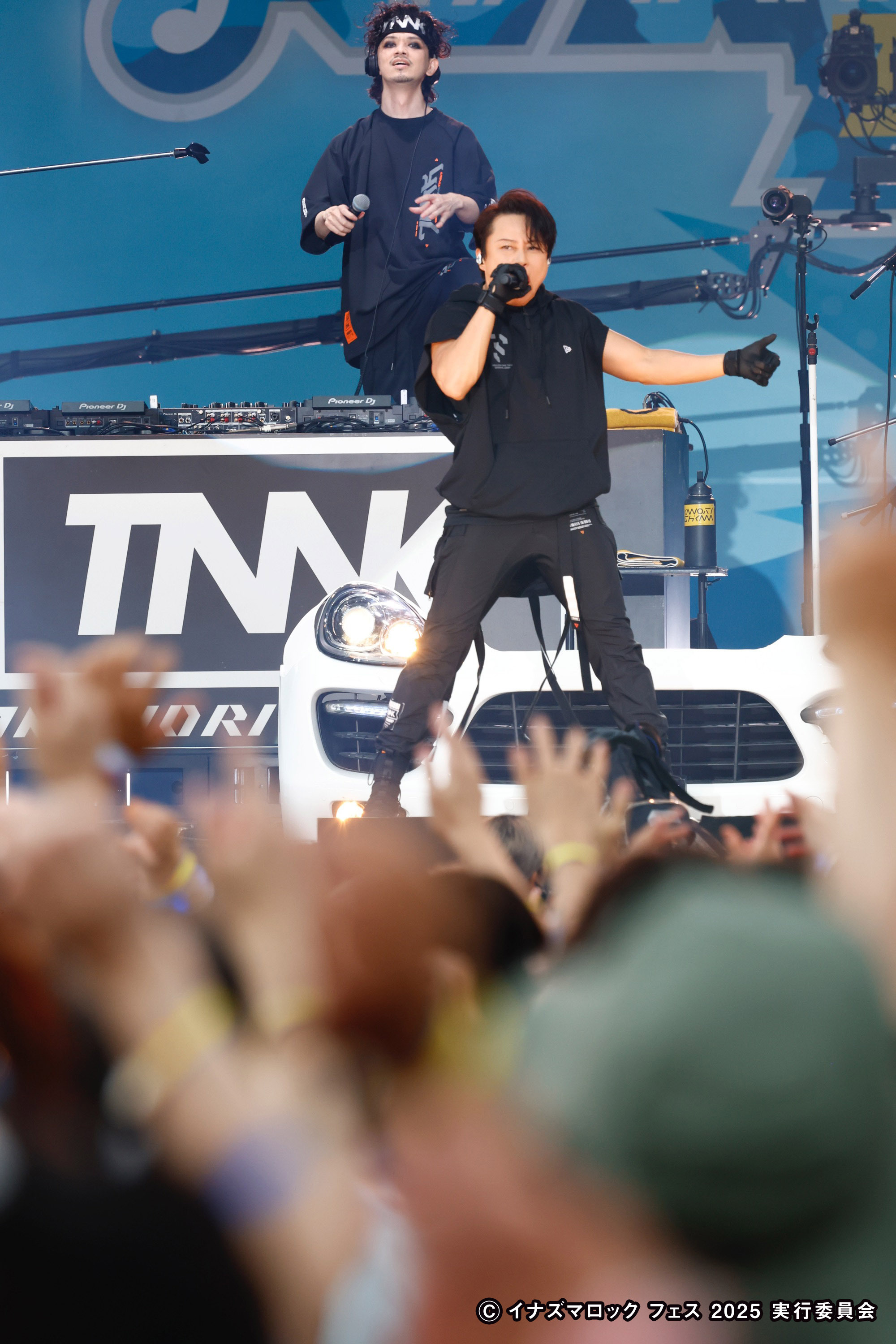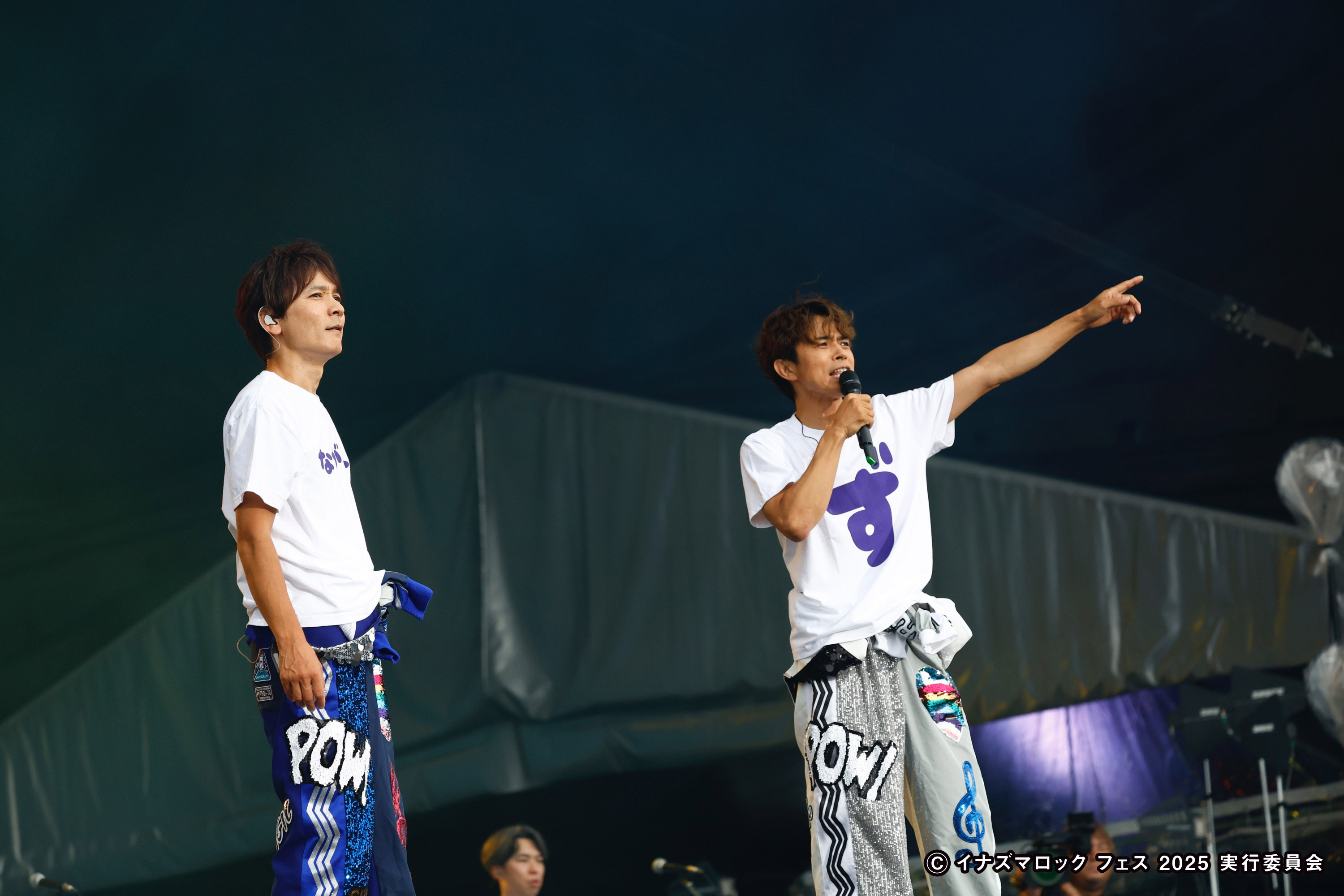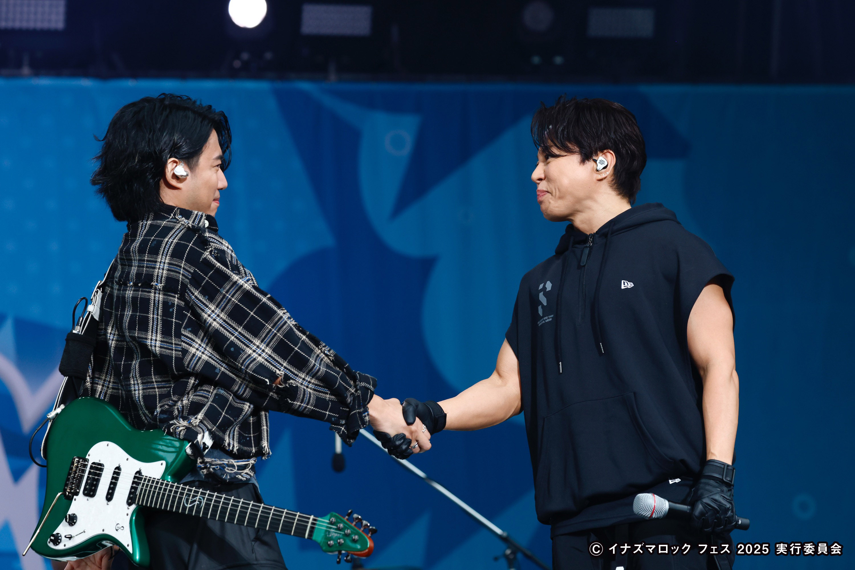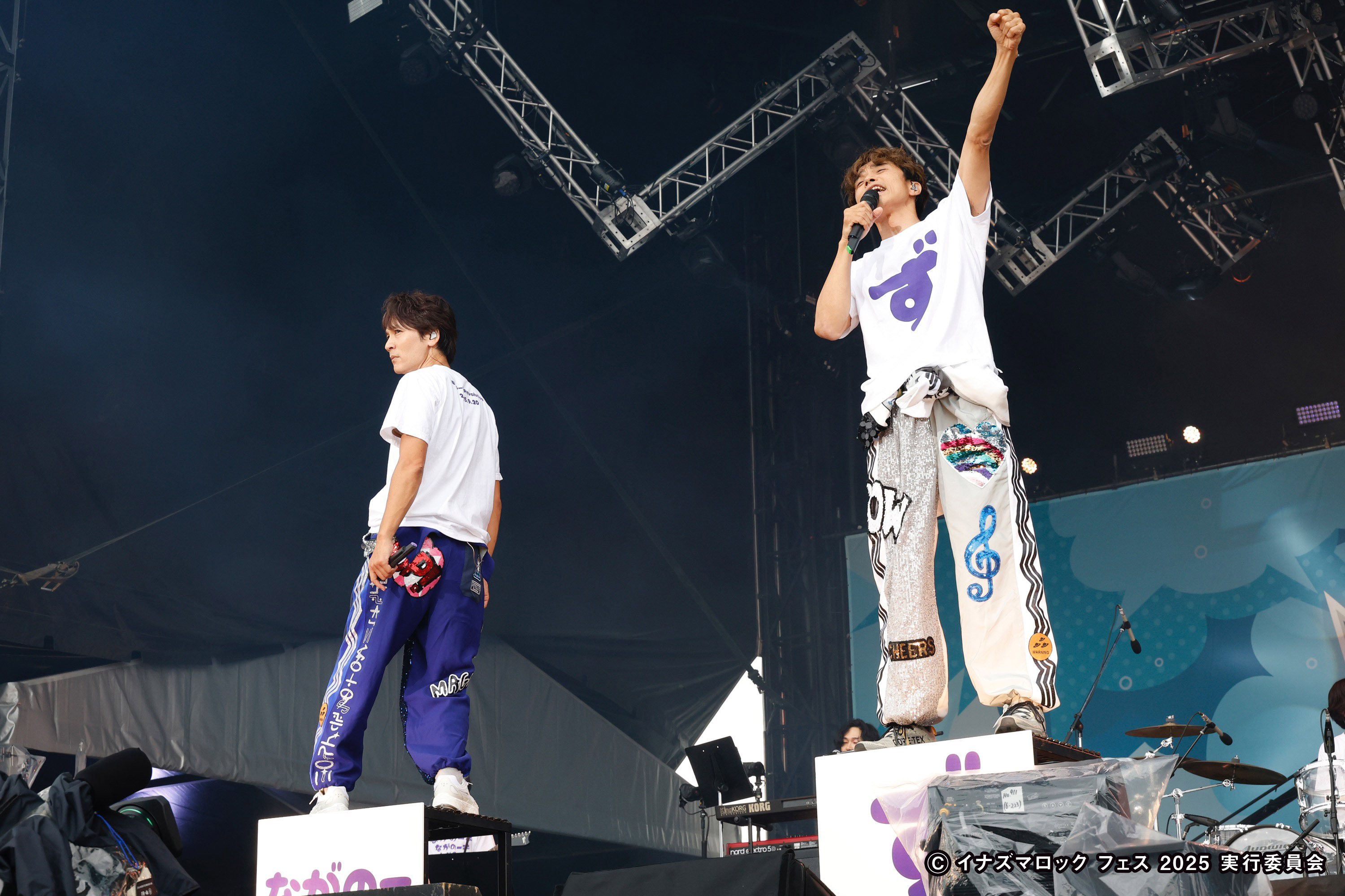 尾崎は学生時代、友人が西川貴教のファンだったことから『イナズマ』の存在を知っていたという。「まさか自分が出演する側になるなんて!」と驚きを語り、藤牧も「ずっとここにいたい!」と、初参加ながら居心地の良さにすっかり魅了された様子。その後も「プロポーズ」で多幸感あふれる歌声を響かせ、「Party Goes On」ではタオルを回してフェスらしい高揚感を演出し、観客のテンションを一気に引き上げた。