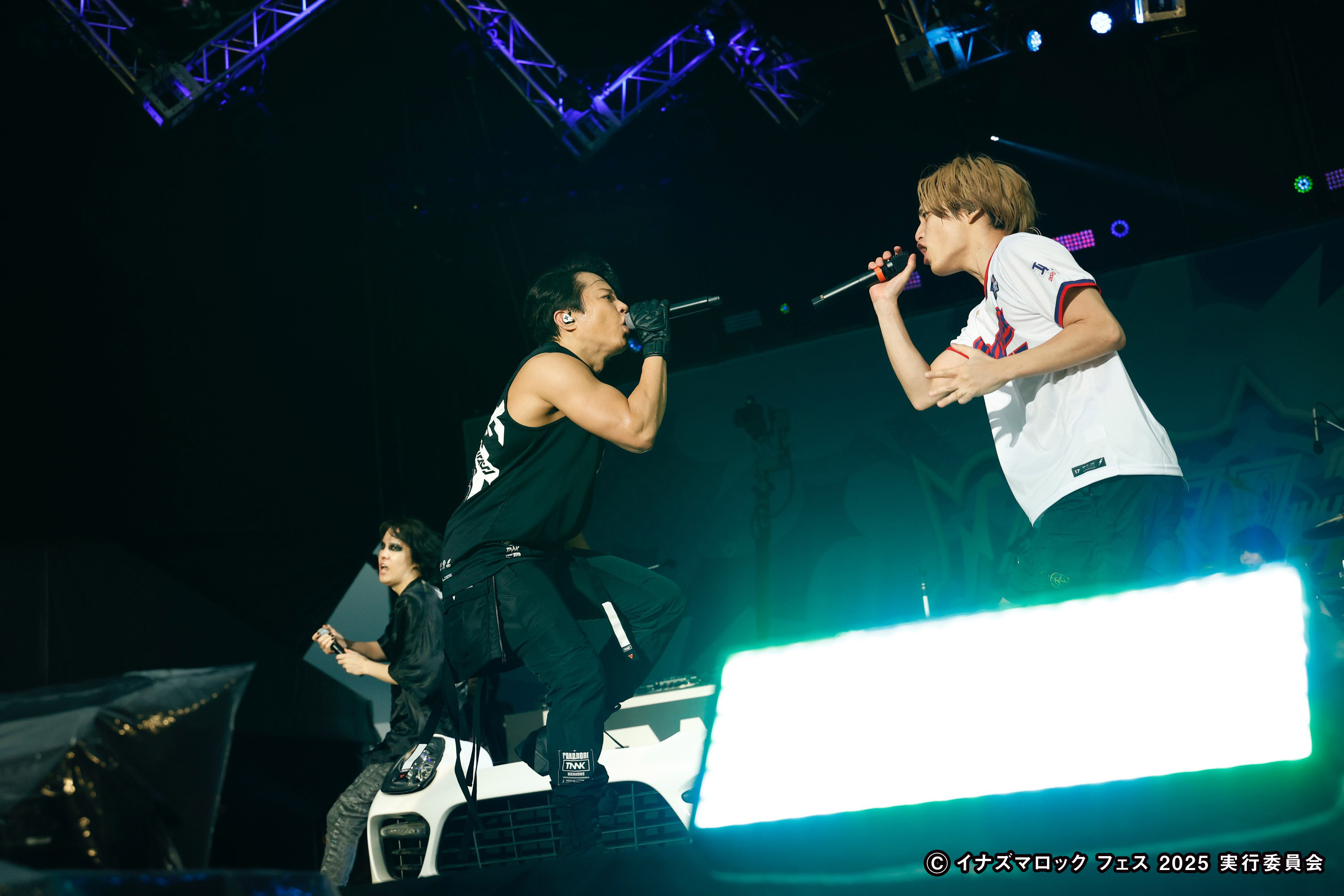 「Let Me Hear」「Virtue and Vice」と、楽曲ごとに歓声が沸き起こるたび、彼らが『イナズマ』に愛されていることがよく分かる。「お待ちかねの兄貴ー!」と叫び、今年も西川とのコラボ曲「Be Affected」を披露。パワフルな西川の声に、クリーンボーカルとスクリームがぶつかり合い、観客は歓喜の声を上げる。「まだまだ暴れたってや〜♪」と西川が煽れば、So(Vo)は「全力でやるしかない! がむしゃらにやっていくんで! 今日一番のパーティをやるぞ!」と宣言。ラストの「Lucky Will Be There」まで、スパークしまくりのステージを駆け抜けた。