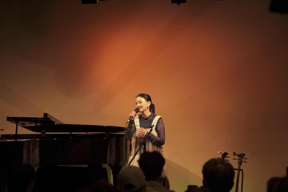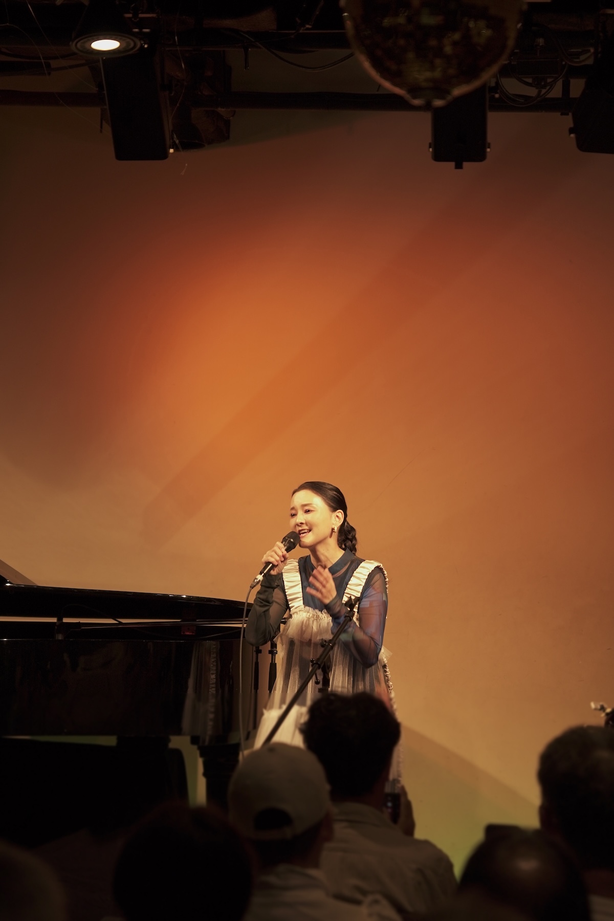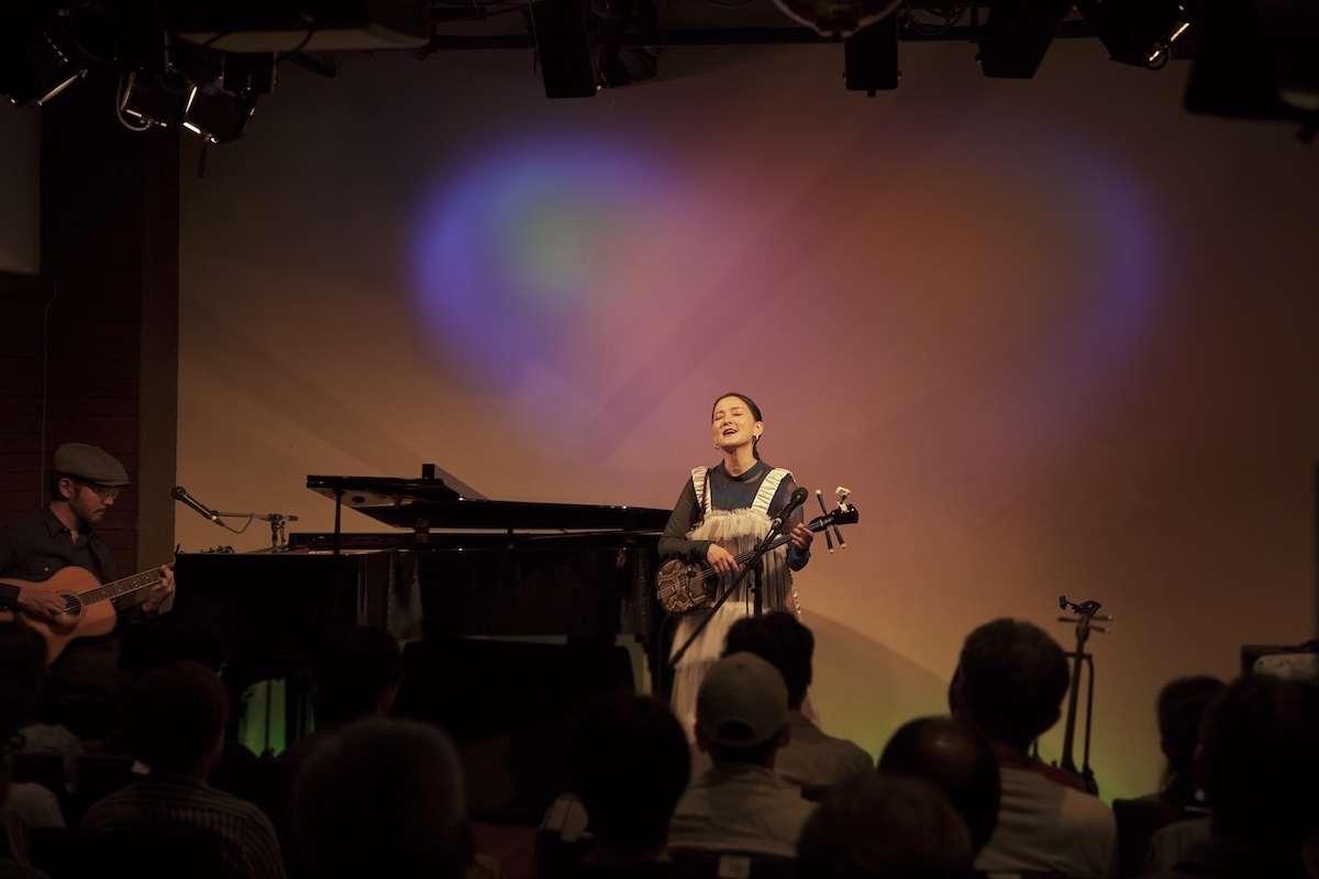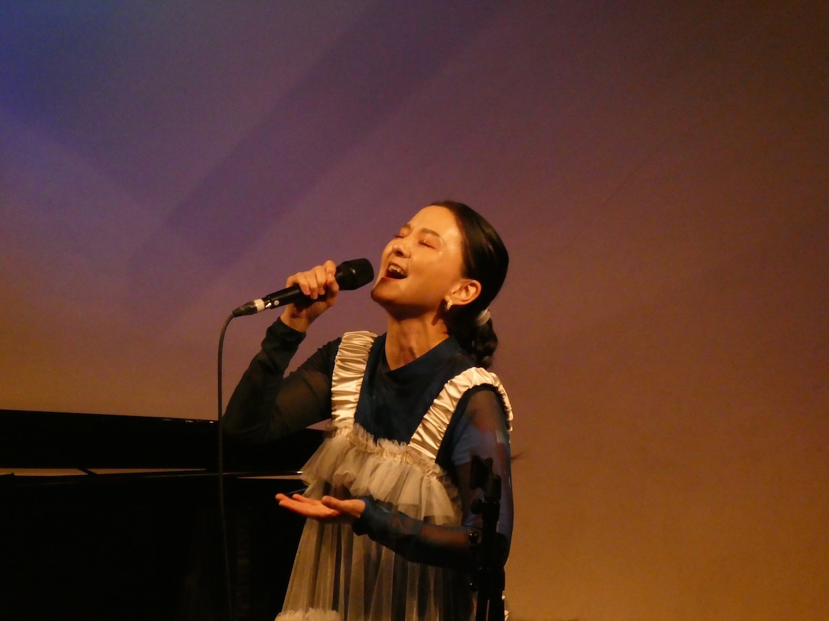 その後、清涼飲料水「CHOYA 夏梅」のCMソングに起用されていた『夏色便り』、数年ぶりに歌唱すると話したユニット時代の楽曲『大好きな人』を披露。歌唱後には、『大好きな人』が誕生するまでのエピソードを話し、彼女の天真爛漫なトークに会場からは笑い声が響いた。カバーコーナーでは『楓』、『三線の花』を歌唱。言葉ひとつひとつが心に届き、客席からは手拍子や「イーヤーサーサー」という声が自然に響き渡り、この日一番の盛り上がりをみせた。