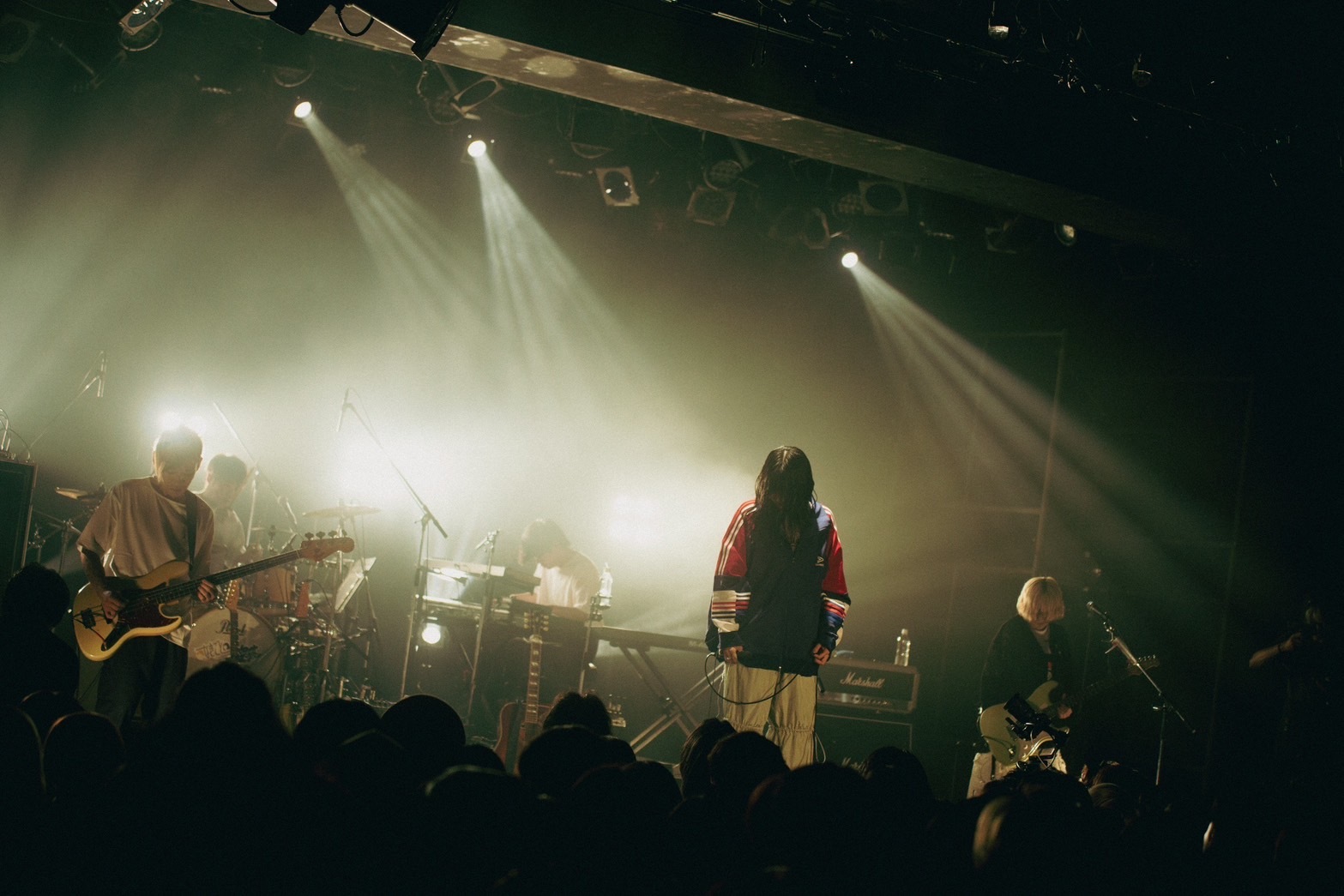 いや、それを言ったら、早速シンガロングした観客に対して、「いいね!」と水上が声を上げた1曲目の「愛才」から、異色の轟音ギターロックナンバー「シャーデンフロイデ」、そしてシンセチックな音色を岡田がギターで鳴らした「ユーモラル討論会」とアップテンポの3曲をたたみかけた怒涛の展開でいきなり度肝を抜き、そこからMCを挟む以外はほぼ全曲、曲間を空けずに曲を繋げながら、最後までこれっぽっちもゆるむことがなかったサポートメンバーを含むバンドの演奏にも圧倒されっぱなしだった。