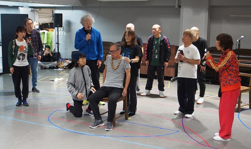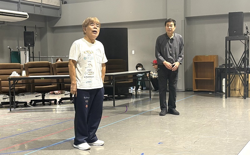この日は通し稽古が行われた。20代から70代までの幅広い年齢層の俳優たちが、年代関係なく、アクティブなウォーミングアップをしているのはSETの大きな特徴だろう。今作ではどんなエンターテインメントを見せてくれるのか、期待に胸が膨らむ。