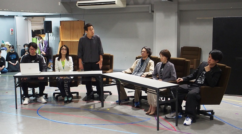 内閣総理大臣はじめ、誰かを彷彿とさせるような一癖二癖もある各省庁の大臣たちは、交渉役を何とか他の省庁に押し付けたく、あれやこれやと言い訳を述べる。その大臣たちを必死でまとめようとするが最終的に交渉役を押し付けられてしまう官房長官・佐藤勝吉(三宅裕司)。緊張感のあるシーンでありながら、笑いがふんだんに散りばめられており、稽古場でも終始笑いが起こっていた。