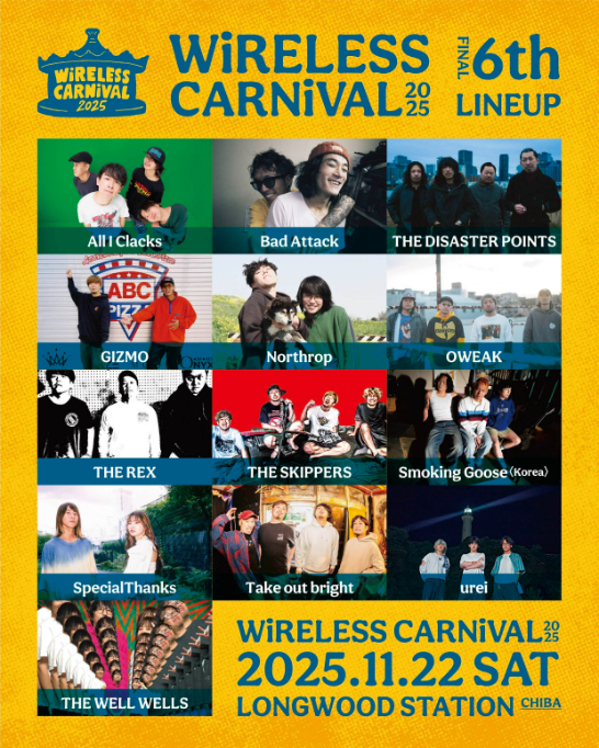 11月22日(土)に千葉県長柄町のロングウッドステーションで開催される『WiRELESS CARNiVAL 2025』から、最終出演アーティスト13組が発表された。