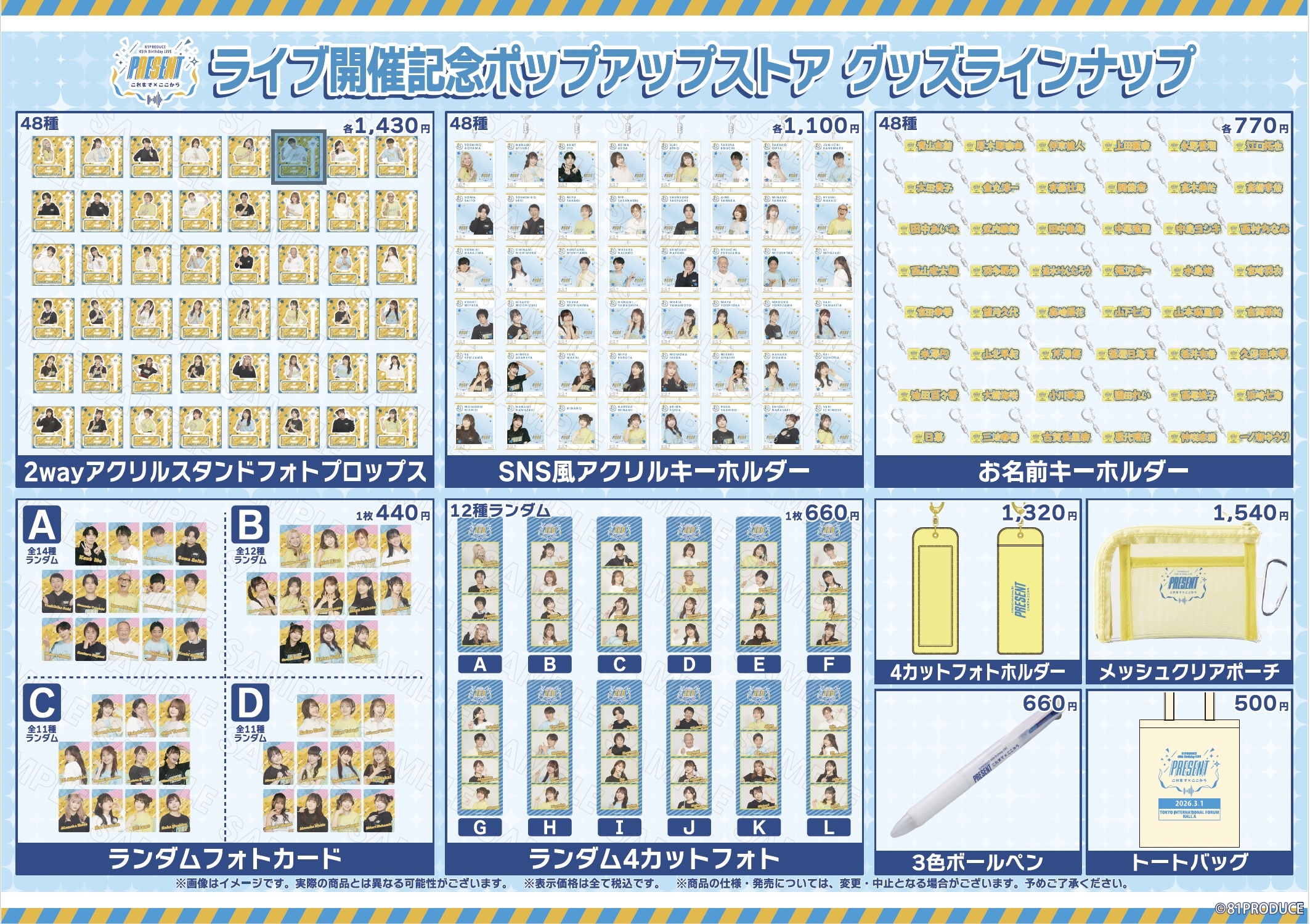 ライブイベントに出演する総勢48名の写真を使用したグッズのラインナップを販売。抽選会やお渡し会なども実施予定。