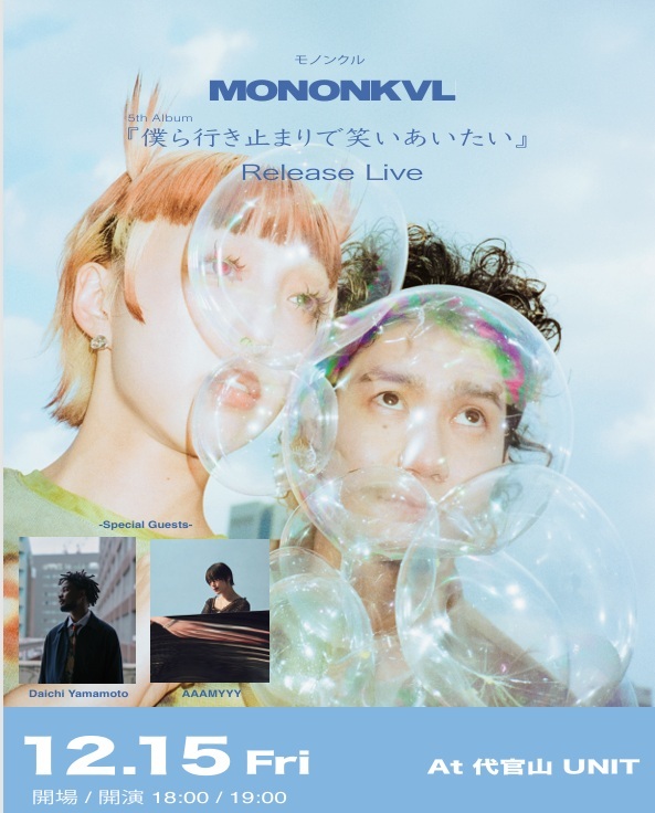 吉田:実は12月5日のワンマンライブに、お二人がスペシャルゲストとして駆けつけてくれるんです。フィーチャリング楽曲を制作すること自体、モノンクルにとって初めての試みでしたけど、ワンマンに他のアーティストさんが来てくれることもなかなかないので。私たちにとってめちゃくちゃ新しい挑戦だし、来てくれるみんなにとっても楽しい時間になると思うので、ご注目ください。