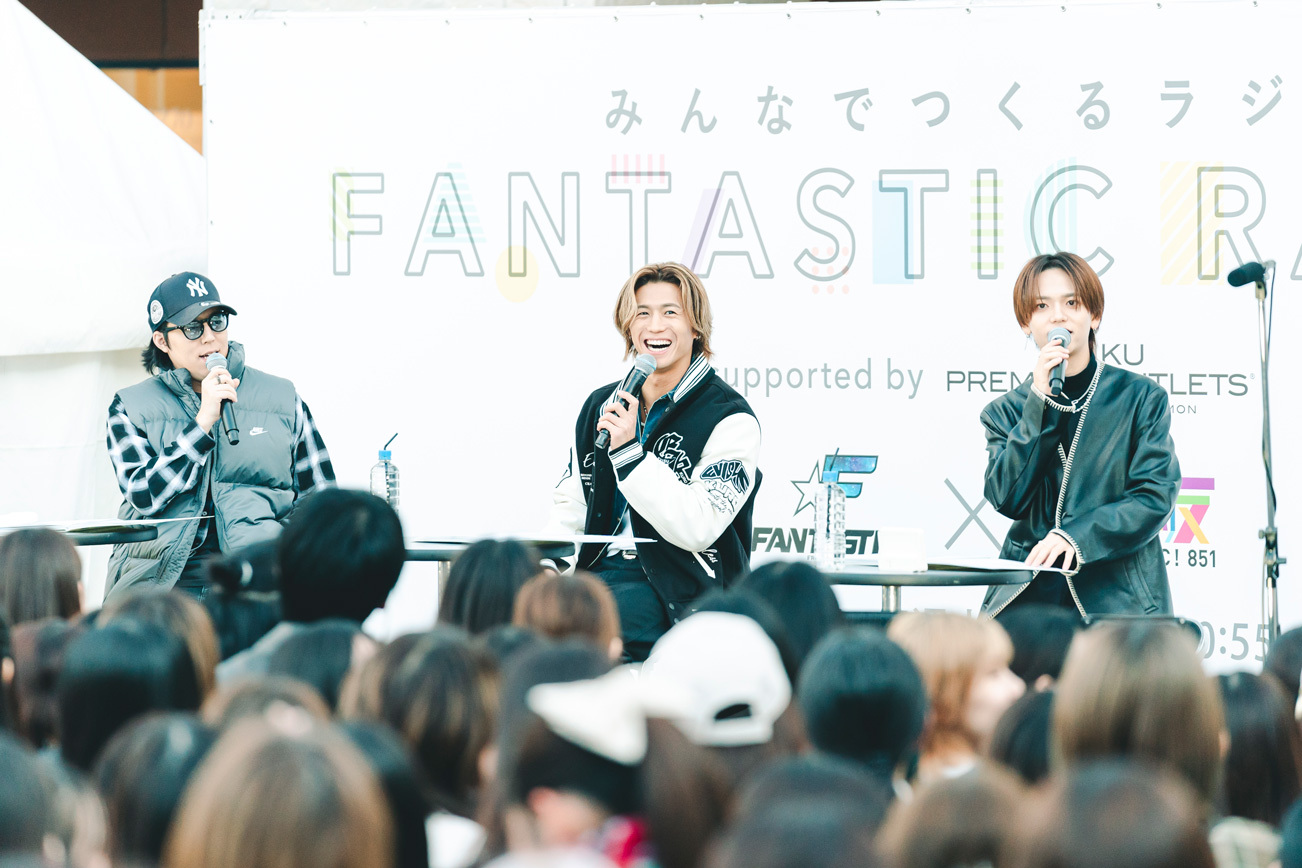 ダンス&ボーカルグループ・FANTASTICS が担当する FM⼤阪のレギュラー番組『みんなでつくるラジオ「FANTASTIC RADIO」supported by りんくうプレミアム・アウトレット』の公開収録が11月3日(月)、りんくうプレミアム・アウトレット(大阪)で開催され、その模様が18日(火)・25日(火)の2週に渡って放送された。