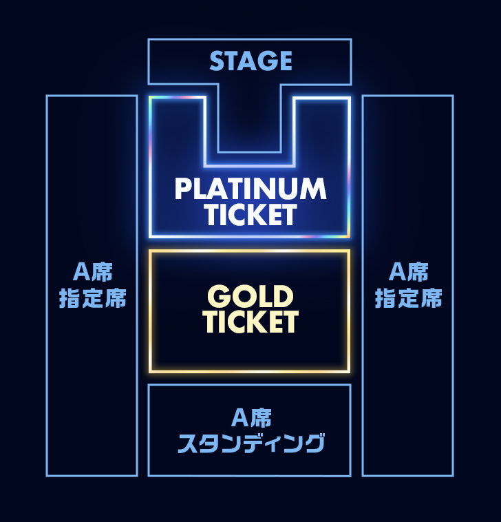 ※プラチナでは、アリーナ前方エリアでステージ鑑賞いただけるほか、「購入者限定ラップスタアオリジナルバンダナ」が付いてきます。