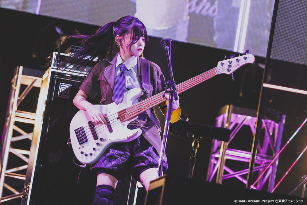 ここに続いたのは「もう何もいらない未来」。熱くもどこかクールさをはらんだそのサウンドがオーディエンスの脳にインパクトを与えると、畳み掛けるように続いたのは“本日の初披露曲”。河原木桃香役の夕莉が奏でるギターに理名がボーカルを乗せ、さらにここにリズム帯が合流すると、始まったのは「命をくれよ」。粒立った言葉のひとつひとつがオーディエンスに叩きつけられ、ラストには理名がシャウト。堂々たるパフォーマンスを見せつけたかと思うと……続け様に“本日の初披露曲その2”である「arrow」へ。高密度な言葉の応酬で会場を席巻すると、さらには“本日の初披露曲その3”「荊の薔薇」までもが連投される。この曲での理名の歌声はどこか儚げで、オーディエンスを耳を奪うものだった。